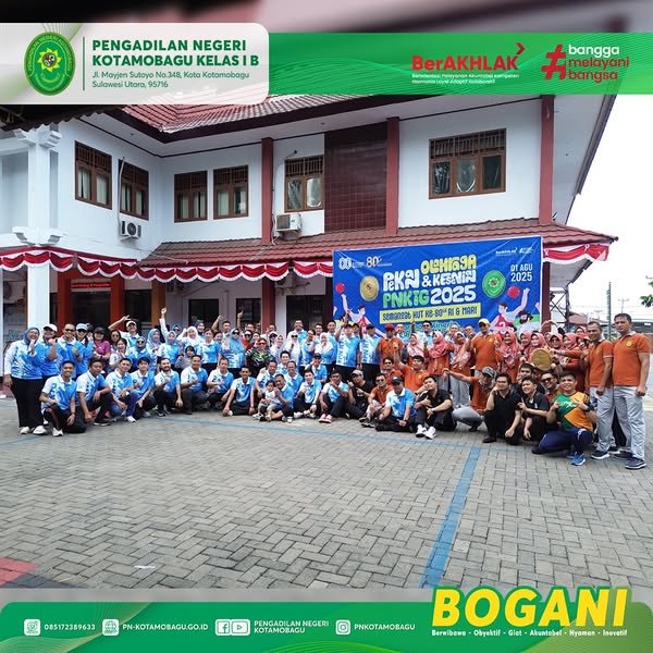 Pengadilan Negeri Kotamobagu menggelar Acara Pembukaan Pekan Olahraga dan Kesenian Dalam Rangka Memperingati HUT RI Ke-80 dan HUT MARI Ke-80.