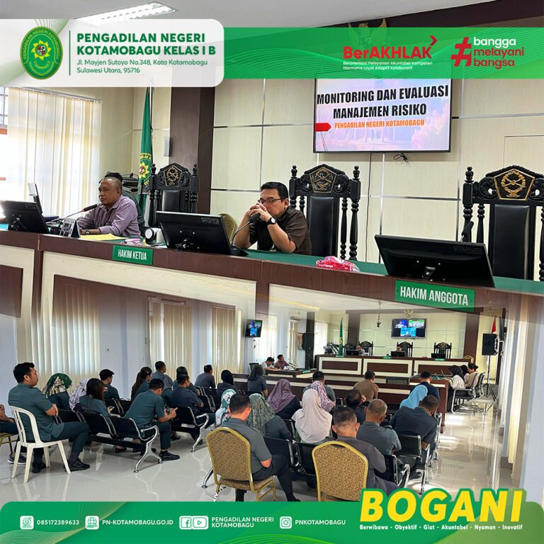 Pengadilan Negeri Kotamobagu menyelenggarakan kegiatan Monitoring dan Evaluasi Manajemen Resiko pada Pengadilan.