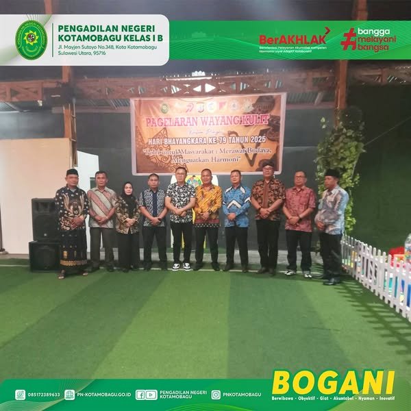 Dalam rangka memperingati Hari Bhayangkara ke-79, Ketua Pengadilan Negeri Kotamobagu Kelas I B, yang diwakili oleh Bapak James M. Masili, S.H. (Panitera), menghadiri Undangan Kepolisian Resor Kotamobagu dalam agenda kagiatan Pagelaran Wayang Kulit dengan Tema : Polri Untuk Mayarakat : Merawat Budaya, Menguatkan Harmoni.