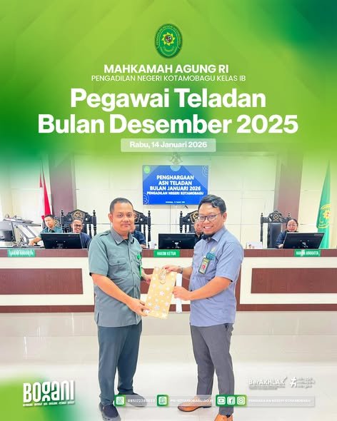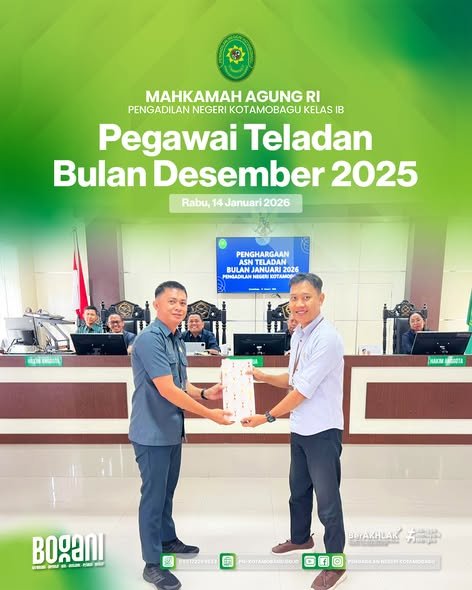 Penyerahan Penghargaan kepada Pegawai Teladan Bulan Desember2025 yang diserahkan oleh Hakim Bapak Galih Devtayudha, S.H. dan Bapak Bimo Putro Sejati, S.H.