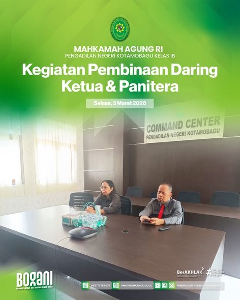 YM Ketua Pengadilan Negeri Kotamobagu Kelas I B, Bapak Yajid, S.H., M.H., didampingi Panitera Ibu Prima Stella Kayadoe, S.H., mengikuti kegiatan Pembinaan Ketua dan Panitera Pengadilan Negeri di Lingkungan Peradilan Umum yang dilaksanakan secara daring dan luring.