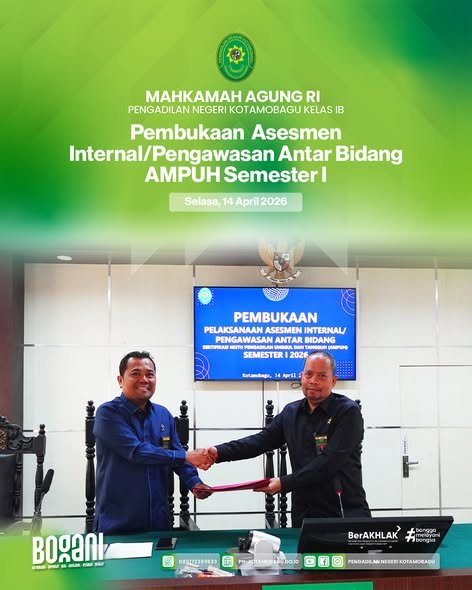 Pengadilan Negeri Kotamobagu Kelas I B melaksanakan Pembukaan Pelaksanaan Asesmen Internal/Pengawasan Antar Bidang AMPUH Semester I 2026.