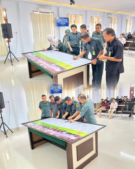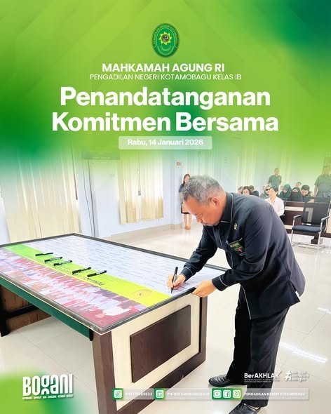 Seluruh Keluarga Besar Pengadilan Negeri Kotamobagu Kelas I B melaksanakan Penandatanganan Komitmen Bersama Tahun 2026, Kegiatan ini merupakan wujud nyata komitmen pimpinan pengadilan dalam memperkuat integritas, akuntabilitas kinerja, serta peningkatan kualitas pelayanan peradilan yang profesional, transparan, dan berkeadilan.