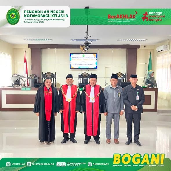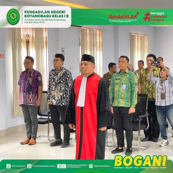 Prosesi ini dipimpin oleh Yang Mulia Ketua Pengadilan Negeri Kotamobagu, Bapak Yajid, S.H., M.H., bertempat di Ruang Sidang Utama Pengadilan Negeri Kotamobagu.