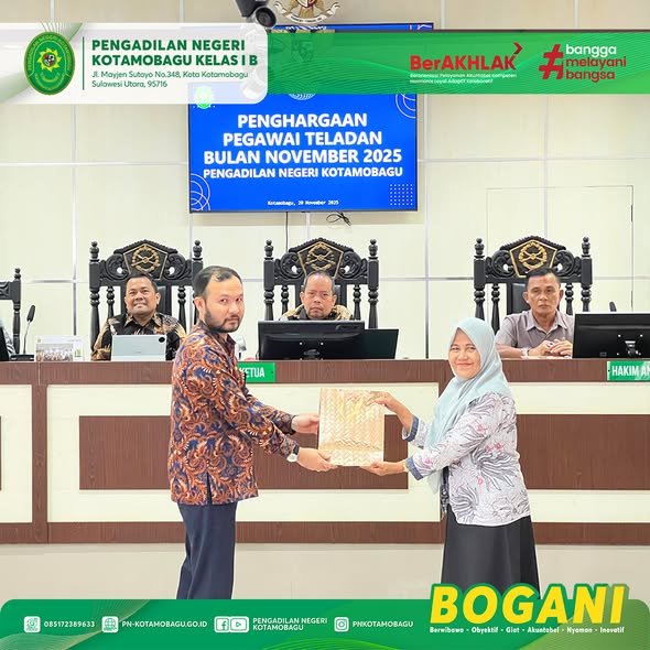 Penghargaan ini diberikan sebagai bentuk apresiasi atas dedikasi, kinerja, dan disiplin dalam melaksanakan tugas serta memberikan pelayanan terbaik di lingkungan Pengadilan Negeri Kotamobagu Kelas I B.