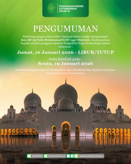 PENGUMUMAN Sehubungan dengan adanya libur Nasional dalam rangka memperingati Isra Mi'raj Nabi Muhammad SAW 1447 Hijriyah