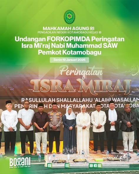 YM Ketua Pengadilan Negeri Kotamobagu Kelas I B yang diwakili Bapak M. Burhanuddin Yusuf, S.H., M.H. menghadiri Undangan dari Pemerintah Kotamobagu dalam rangka Peringatan Isra Miraj Nabi Muhammad SAW 1447 Hijriyah. Bertempat di Masjid Agung Baitul Makmur Kotamobagu.