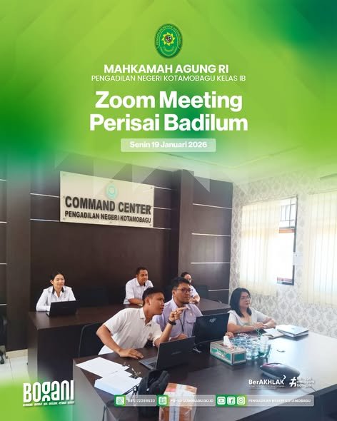 Bertempat di Ruang Command Center, Para Hakim dan Panitera mengikuti zoom meeting dari Mahkamah Agung dalam rangka PERISAI BADILUM Pertemuan Rutin Sarasehan (Perisai) episode ke-13 dengan topik: Pengakuan Bersalah,