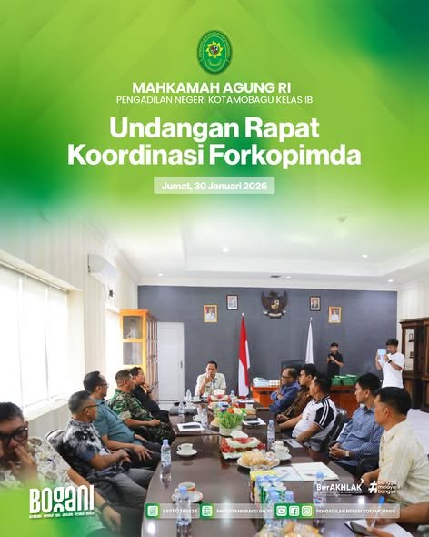 YM Ketua Pengadilan Negeri Kotamobagu Kelas I B yang diwakili Bapak M. Burhanuddin Yusuf, S.H., M.H. menghadiri Undangan dari Pemerintah Kotamobagu dalam Rapat Koordinasi Forkopimda. Bertempat Kantor Wali Kota Kotamobagu.
