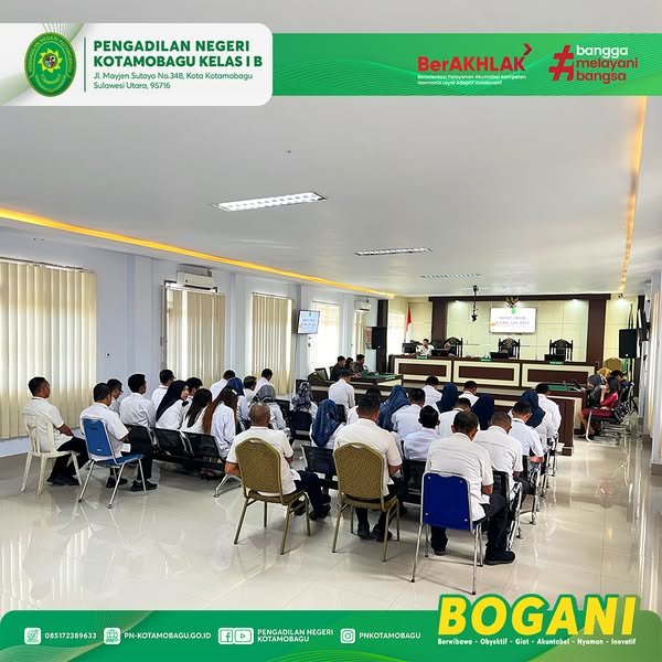 Kegiatan tersebut dilaksanakan di Ruang Sidang Utama Pengadilan Negeri Kotamobagu Kelas I B, dan diikuti oleh Para Hakim serta seluruh pegawai.
