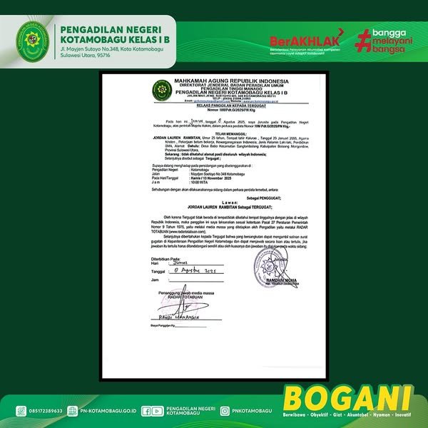 Perkara Nomor 108/Pdt.G/2025/PN Ktg atas nama JORDAN LAUREN RAMBITAN