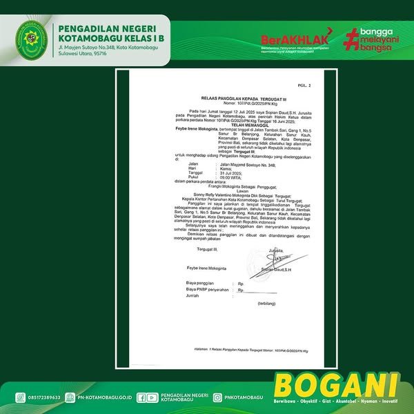 Perkara Nomor 107/Pdt.G/2025/PN Ktg atas nama FEYBE IRENE MOKOGINTA