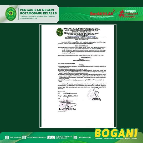 Perkara Nomor 20/Pdt.G/2025/PN Ktg atas nama JIMMY WONG