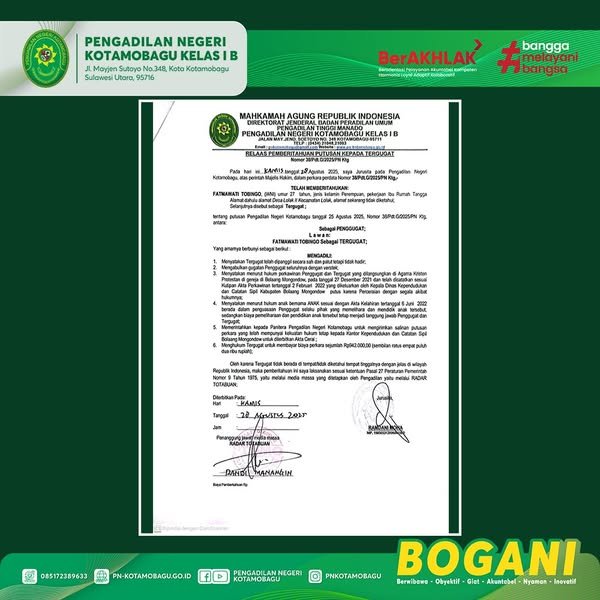 Perkara Nomor 38/Pdt.G/2025/PN Ktg atas nama FATMAWATI TOBINGO