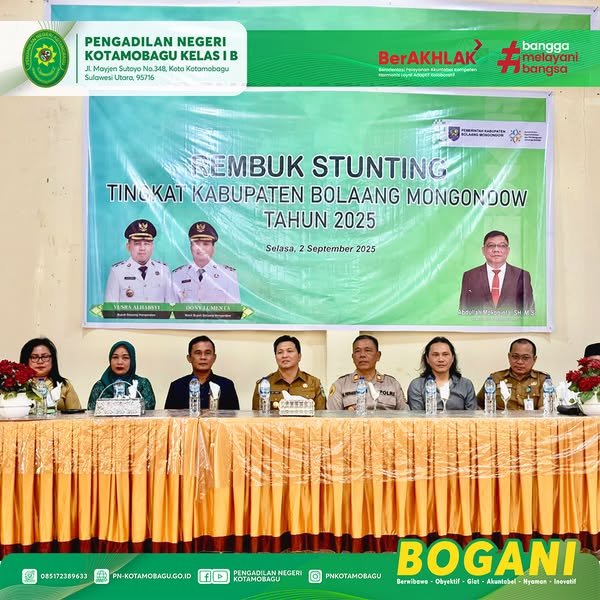 YM Ketua Pengadilan Negeri Kotamobagu Kelas I B yang diwakili Bapak James M. Masili, S.H. (Panitera), menghadiri Undangan Pemerintah Kabupaten Bolaang Mongondow dalam rangka Rembuk Stunting Tingkat Kabupaten Bolaang Mongondow Tahun 2025.