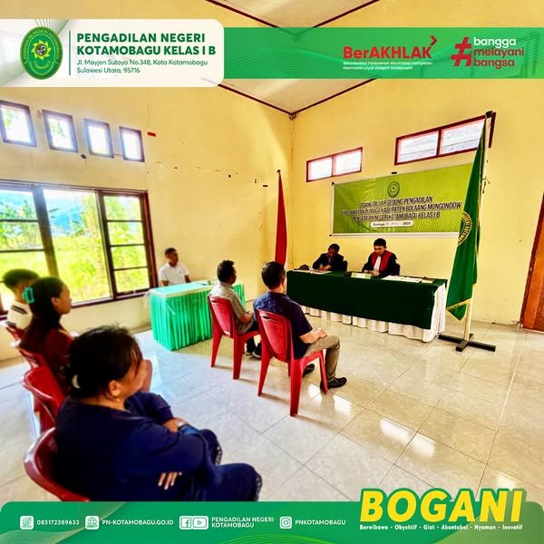 Pengadilan Negeri Kotamobagu melaksanakan Sidang Di Luar Gedung Pengadilan yang bertempat di Kantor Kecamatan Dumoga Timur, Kab. Bolaang Mongondow.
