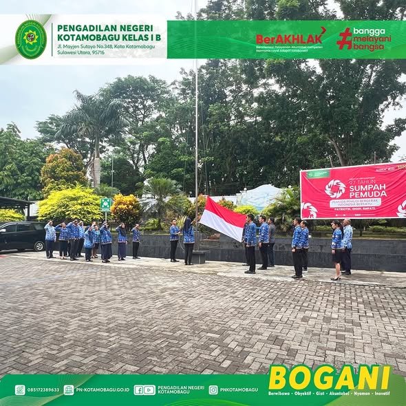 Keluarga Besar Pengadilan Negeri Kotamobagu Kelas I B menggelar Upacara Peringatan Hari Pahlawan Nadional Tahun 2025 di halaman Kantor. Sebagai Inspektur Upacara Hakim Bpk. Hengky Pranata Simanjuntak, S.H., Upacara Hari Ini turut diikuti oleh para Hakim, Pegawai, dan honorer.