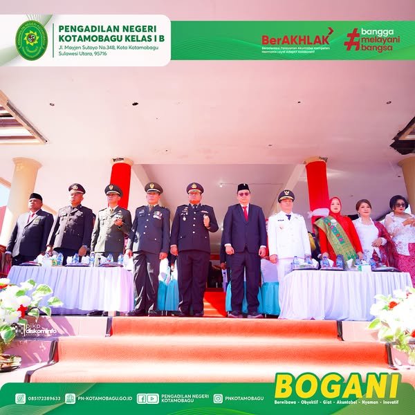 YM Wakil Ketua Pengadilan Negeri Kotamobagu Kelas I B Bapak Wempy W. J. Duka, S.H., M.H., menghadiri Undangan Pemerintah Kabupaten Bolaang Mongondow dalam rangka Upacara Peringatan HUT ke – 80 Kemerdekaan Republik Indonesia di Kantor Bupati Pemkab Bolaang Mongondow.