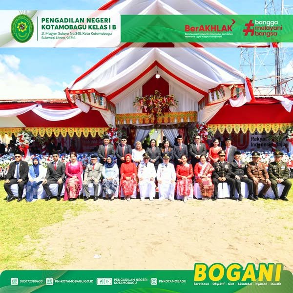 YM Ketua Pengadilan Negeri Kotamobagu Kelas I B yang diwakili Bapak M. Burhanuddin Yusuf, S.H., M.H. (Hakim), menghadiri Undangan Pemerintah Kabupaten Bolaang Mongondow Timur dalam rangka Upacara Peringatan HUT ke – 80 Kemerdekaan Republik Indonesia di lapangan Gogaluman Tutuyan.